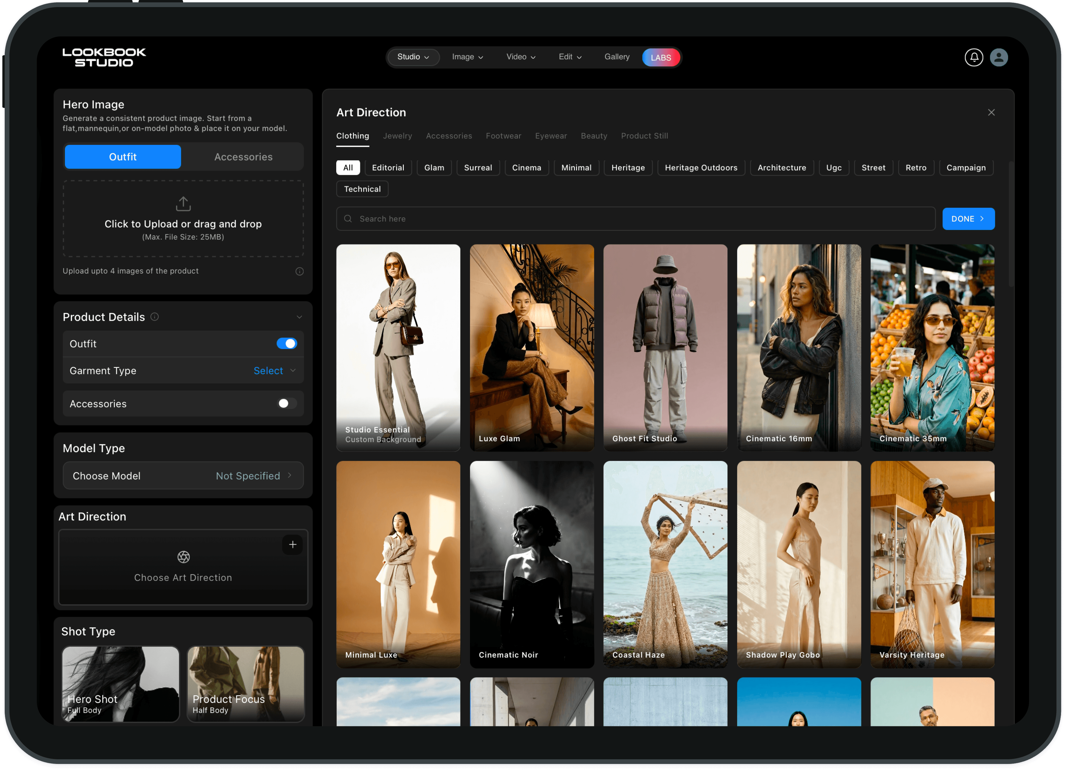 Lookbook Suite AI is an all-in-one tool that helps you create professional fashion photos instantly. You upload a single picture of your product, and our tool builds images for your website, ads, and social media. It saves you the time and money of a big photoshoot.